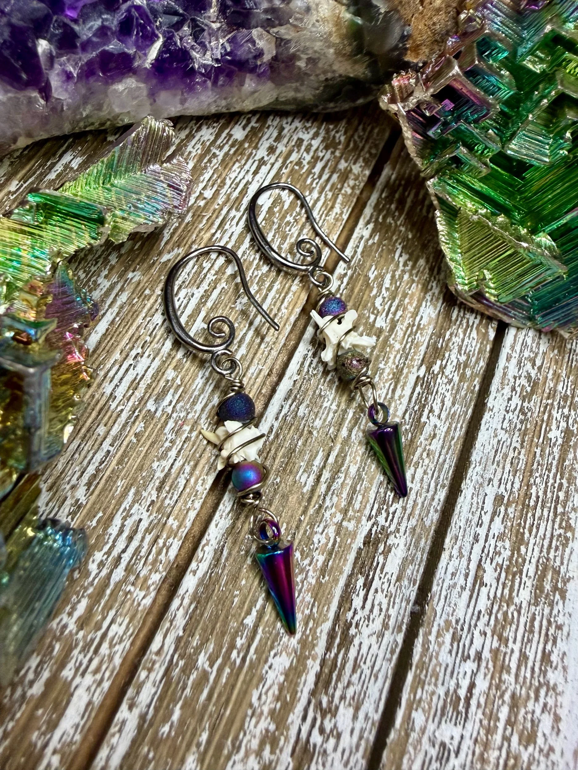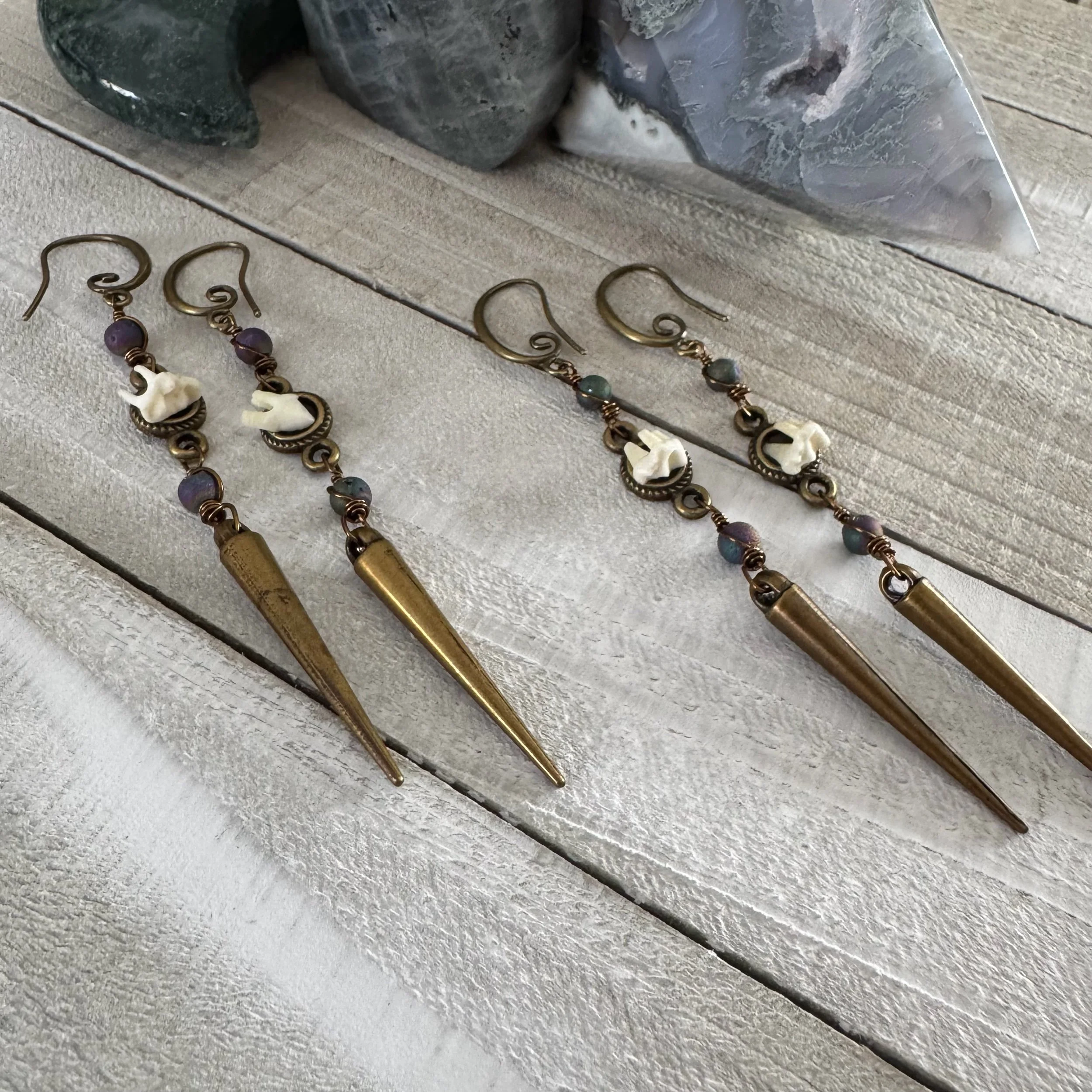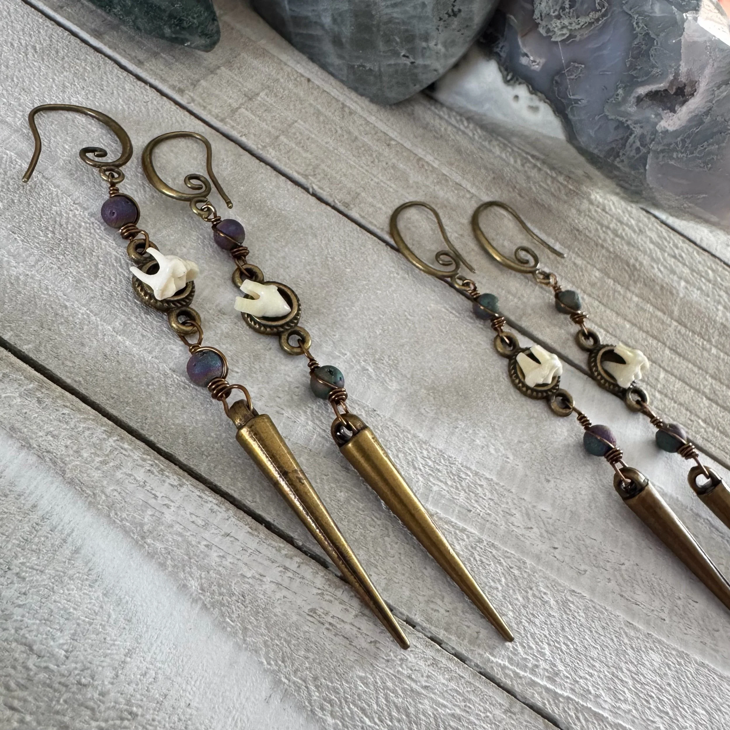 Free shipping over $75.00 Bone Earrings Categories: Select a Category Jewelry Moon Necklaces Obsidian Rose Quartz and Angel Aura Rose Quartz Opalite and Angel Aura Opalite Arrowhead Necklaces Obsidian Rose Quartz and Angel Aura Rose Quartz Opalite and Angel Aura Opalite Star Necklaces Obsidian Rose Quartz and Angel Aura Rose Quartz Opalite and Angel Aura Opalite Raw Crystal and Stone Necklaces Coffin Necklaces Crystal Earrings Bracelets Rings Bone Jewelry Bone Earrings Bone Necklaces Crystals and Stones Christmas Tree Toppers Bone and Skull Art Wholesale Gift Card Jewelry / Bone Jewelry / Baby Rattlesnake Vertebrae Earrings $40.00 Real Opossum Teeth Earrings $55.00 Snake Vertebra And Labradorite Earrings $45.00 Coyote Paw Bone Earrings $60.00