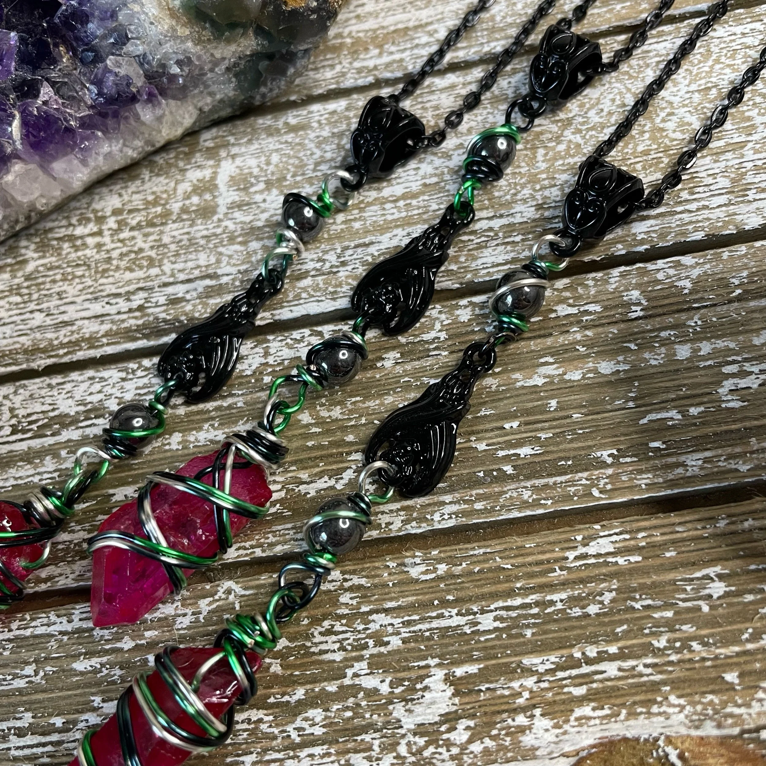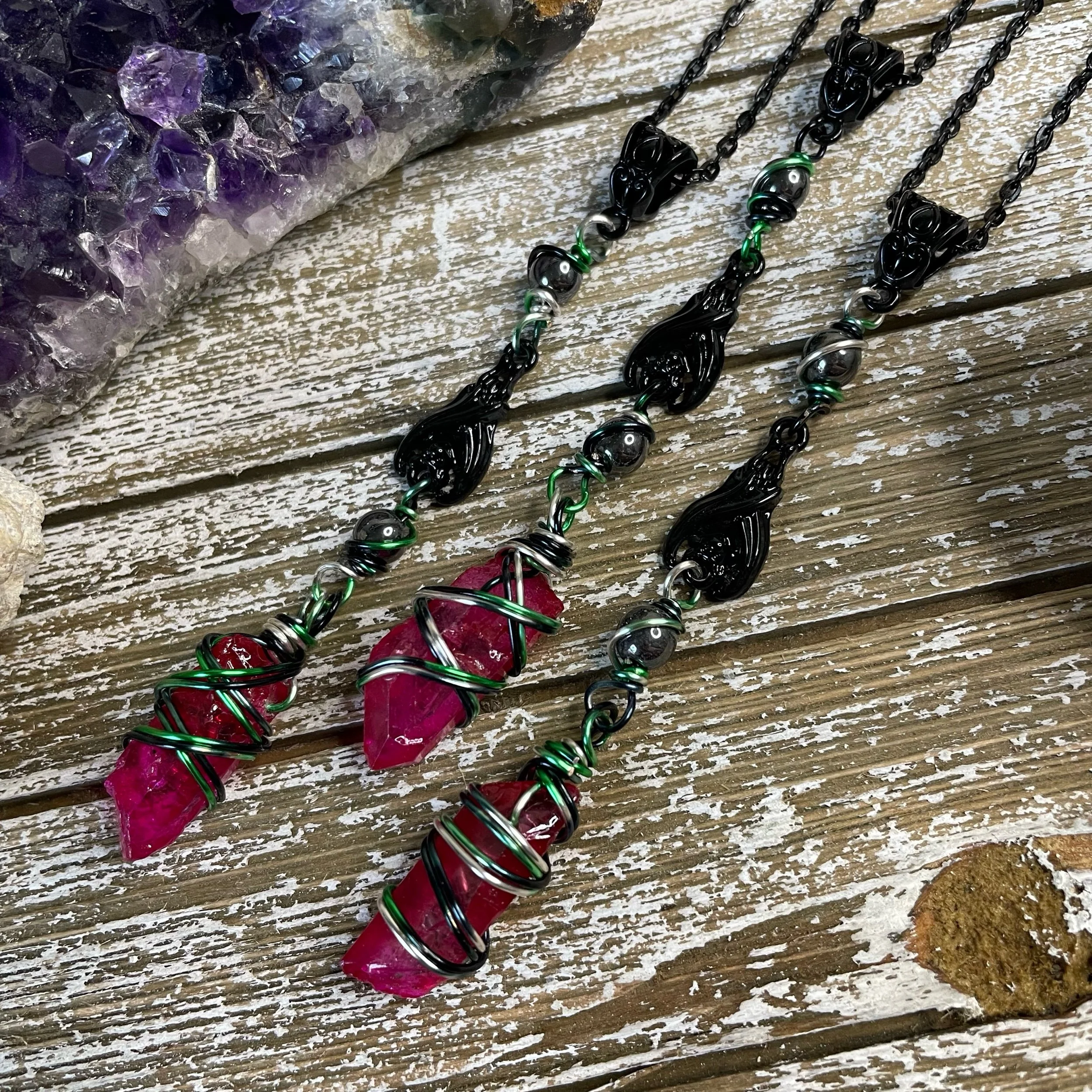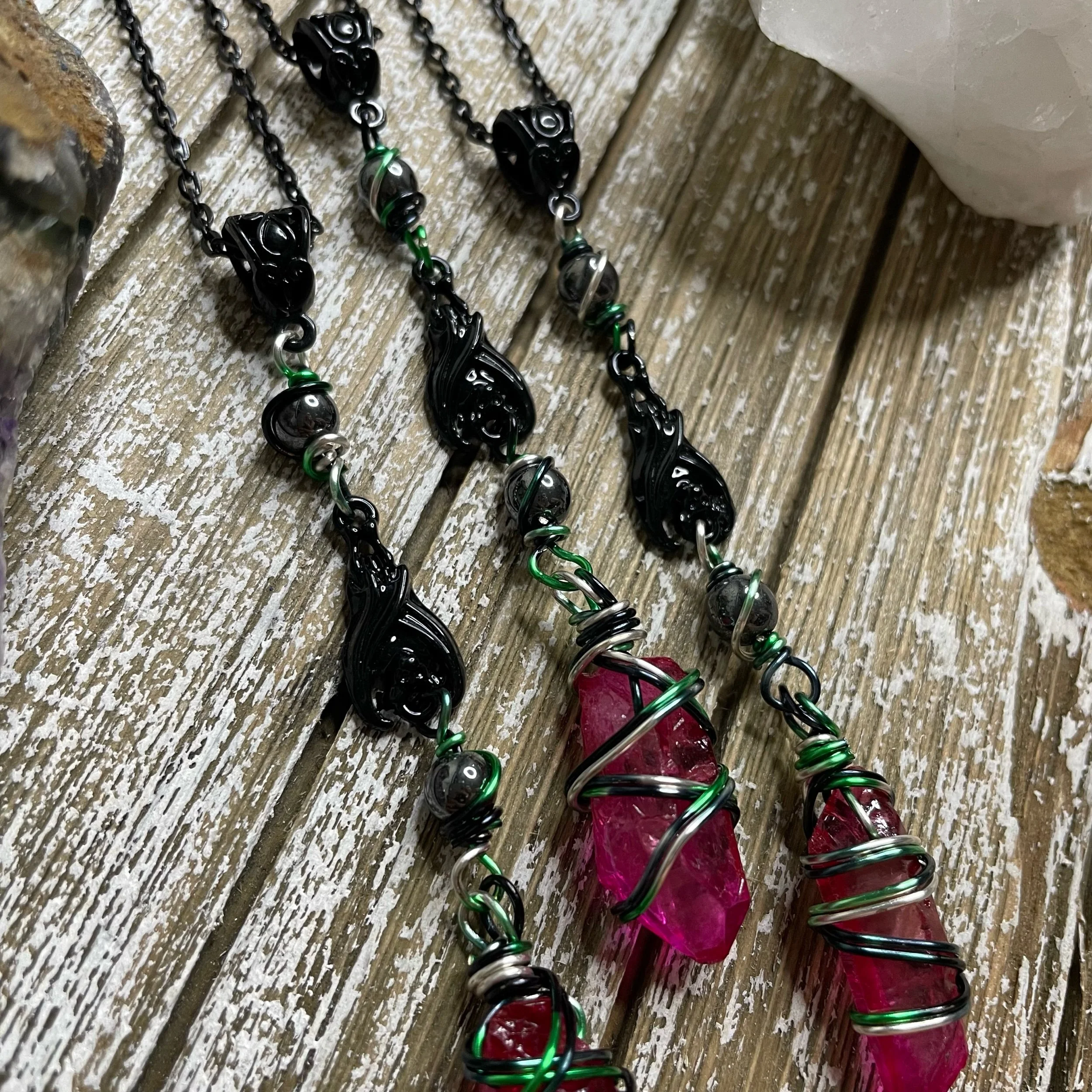 *due to the nature of these stones, size, shape, color pattern and wire wrap design will vary.